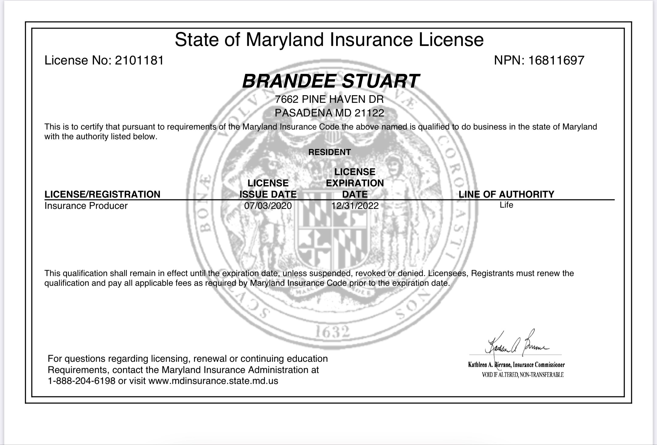 Hi I am Brandee Stuart, mother of one. As a mom I understand how important it is to protect your loved ones from financial devastation. Financial planning is the most important thing you can do to create a stable future for your family. As your agent, I will help you understand your needs and help you find the right options. Whether you are planning for your retirement, creating a legacy or making sure your last days are covered, I will be there for your family from beginning to end.